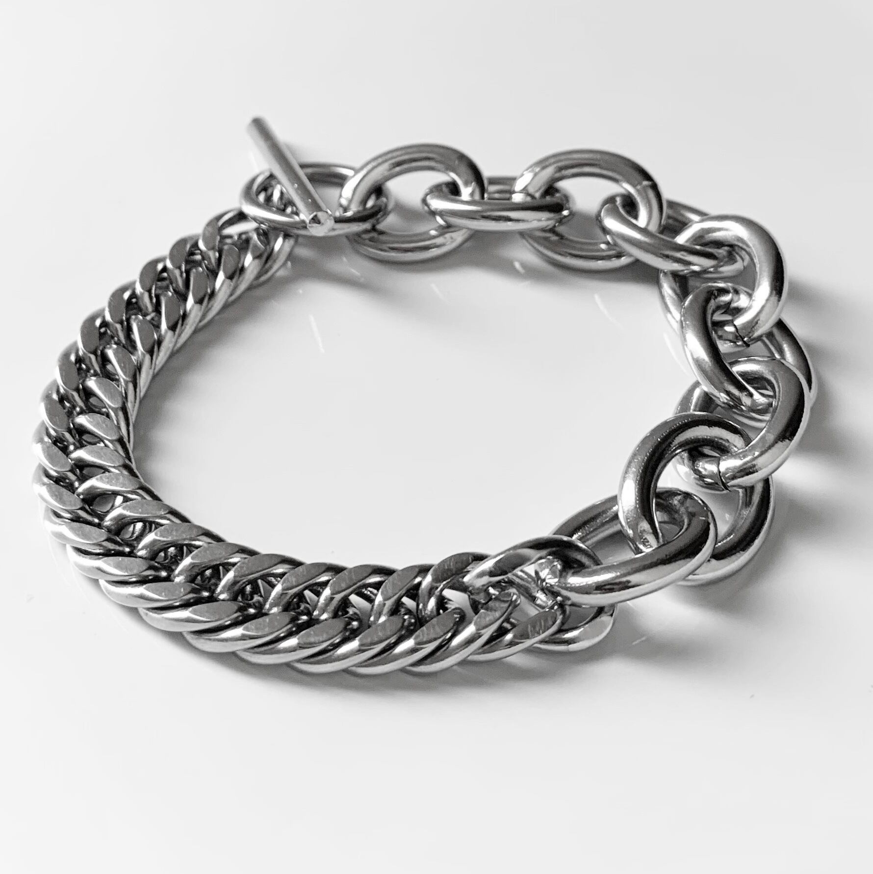 丸型×喜平チェーンマンテルブレスレット シルバー 11mm ステンレス チェーンブレスレット