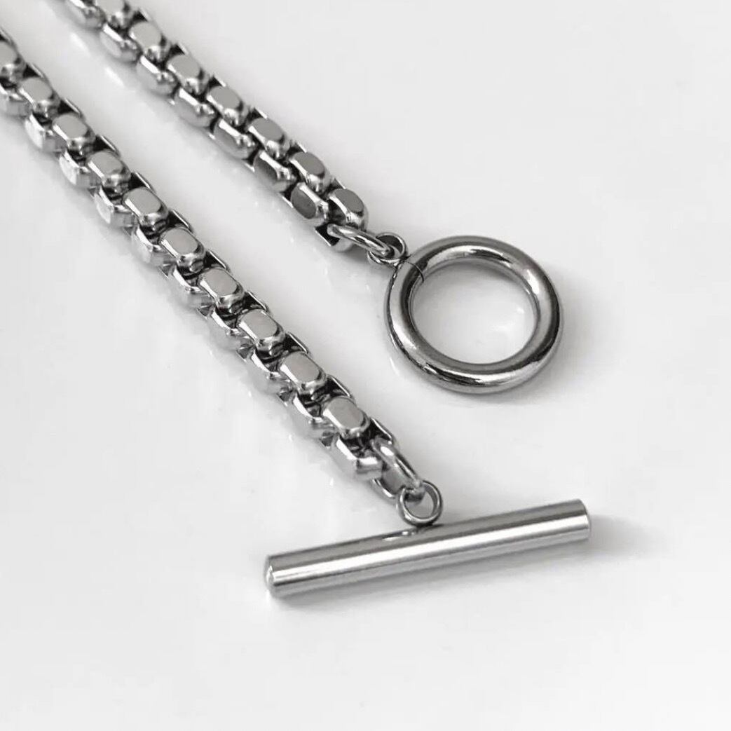 シンプルなチェーンネックレスよりスタイリッシュ。シャツ、tシャツ、ポロシャツ、とマンネリしがちのコーデに首元で差をつけるのがポイント✨