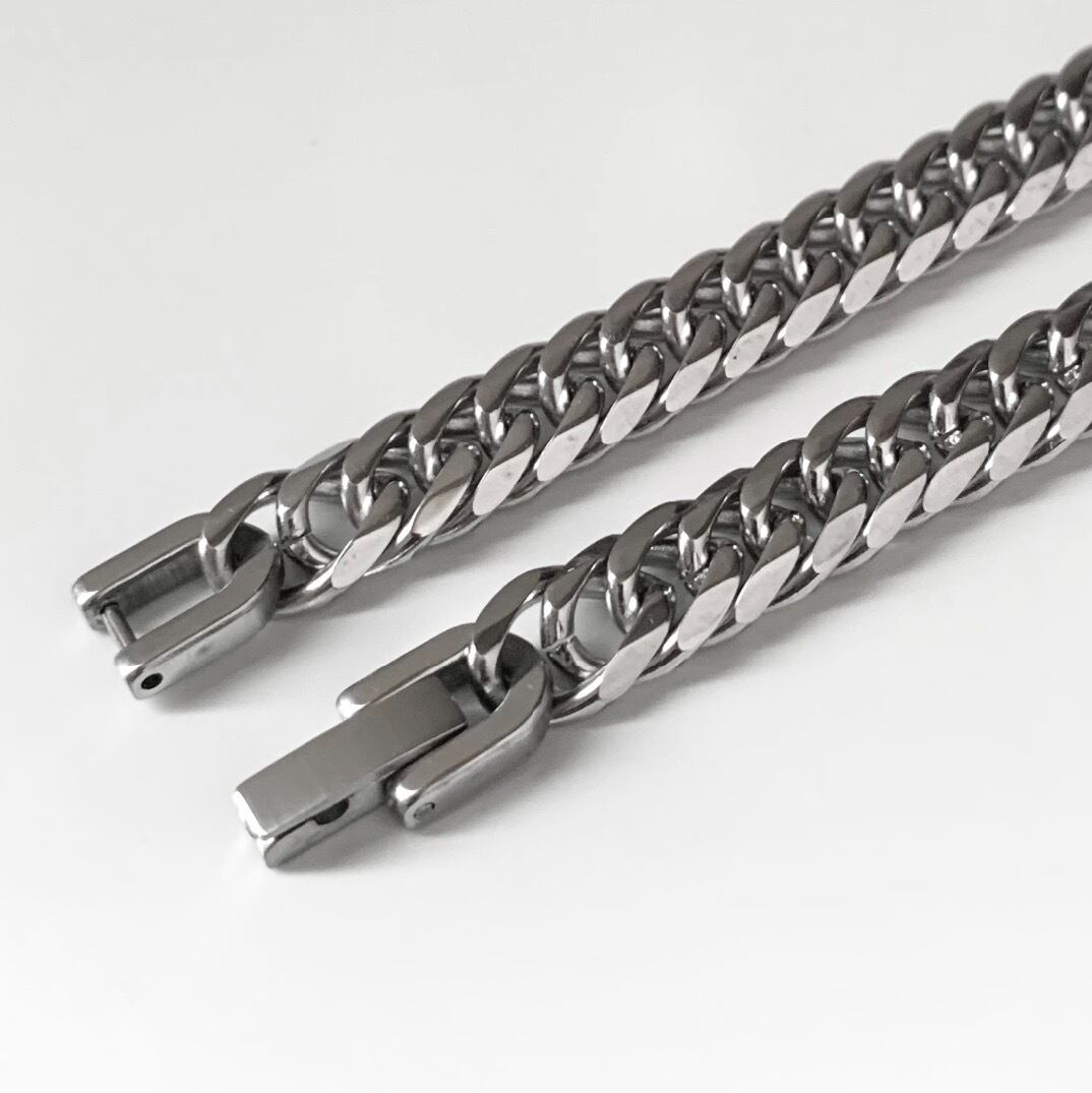 装着部も中折れジョイント式でどこから見てもスタイリッシュでシンプルで普段から愛用いただけるチェーンネックレスです。幅広いサイズ展開で性別問わず着用いただけます。鏡面仕上げで綺麗に輝きます