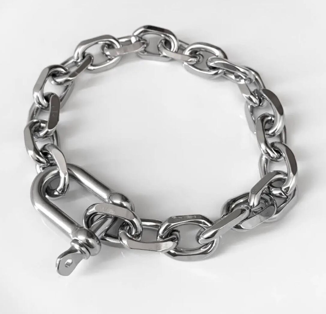 U型ロックチェーンブレスレット 角型 シルバー 11mm ステンレス