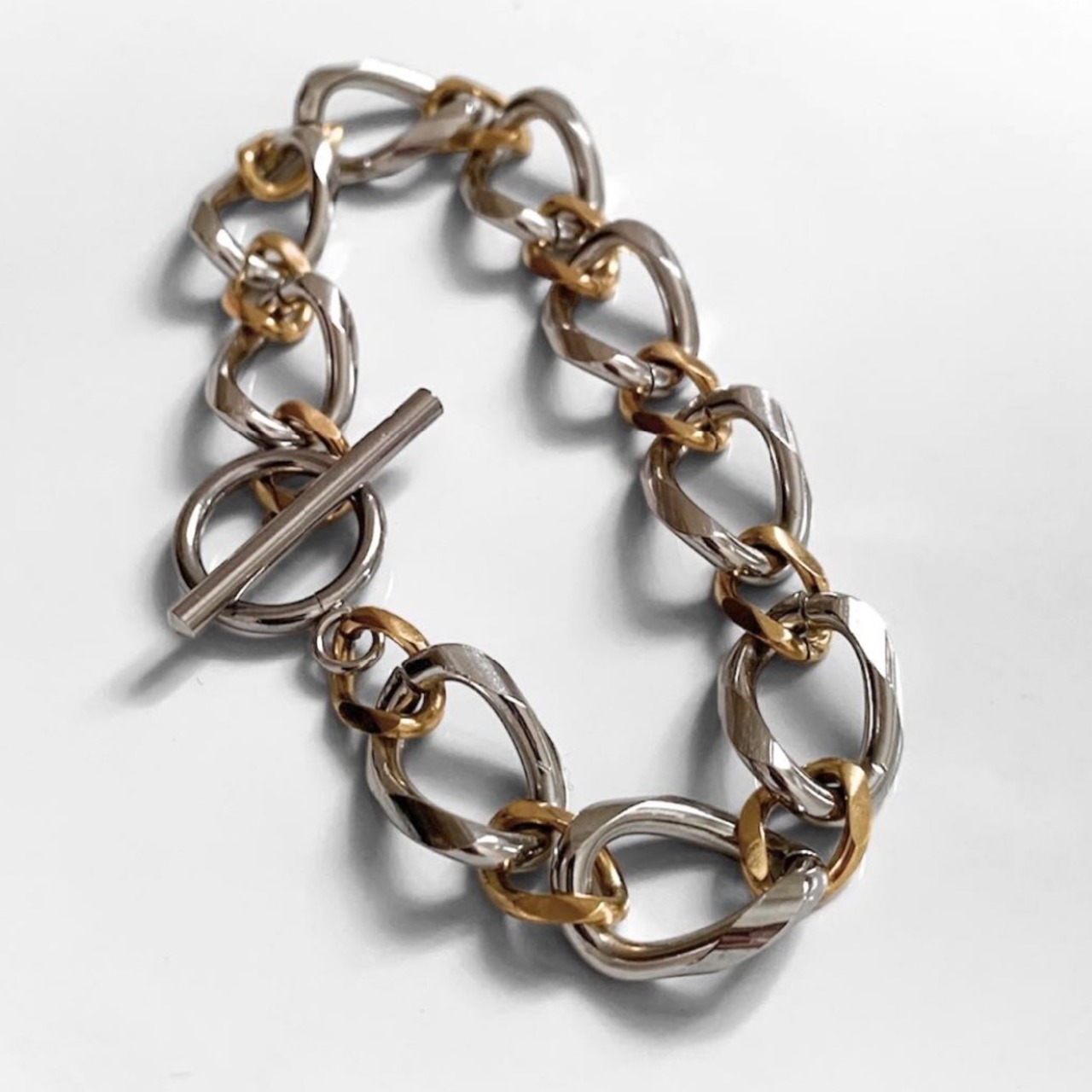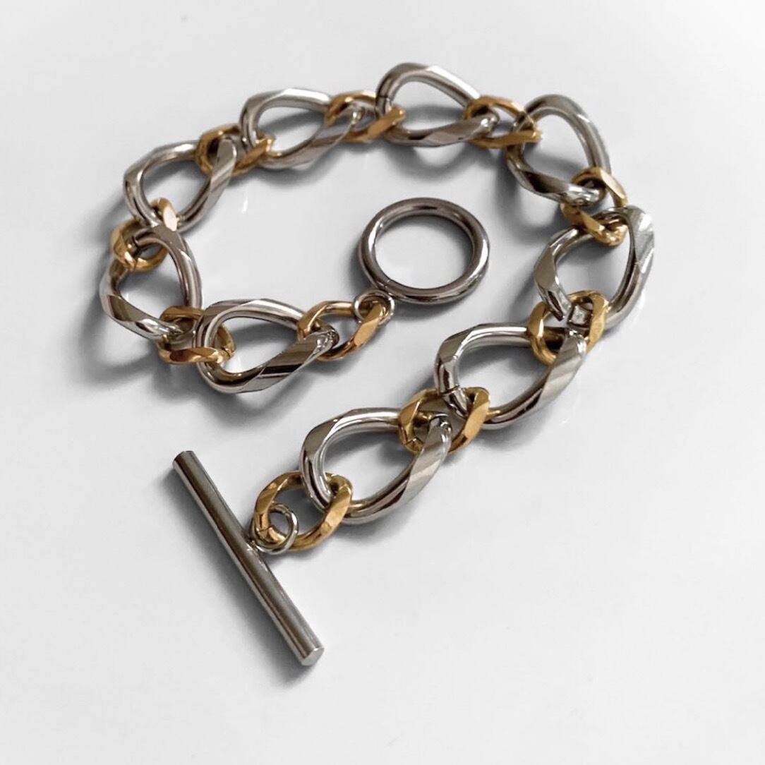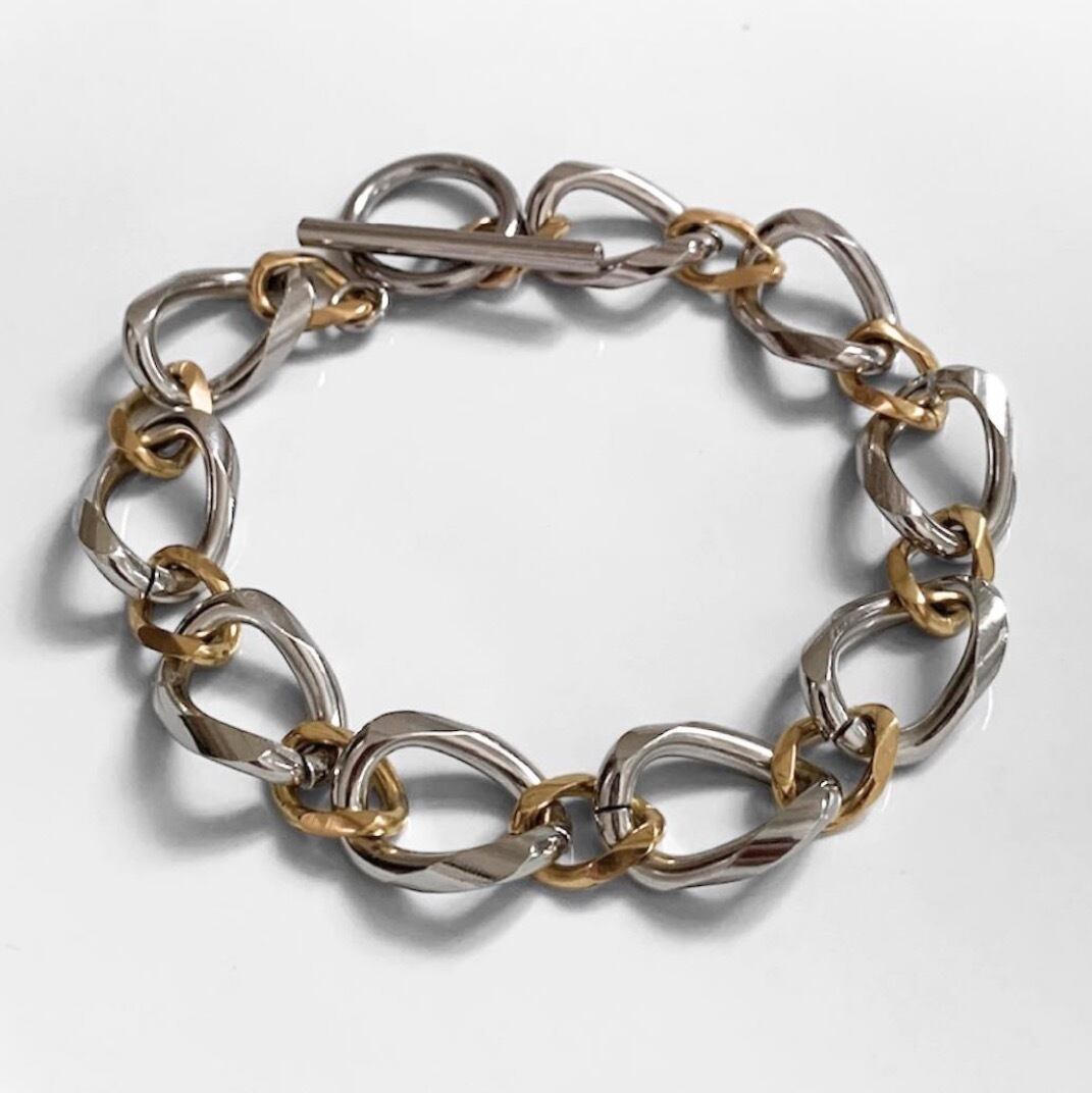 チェーンマンテルブレスレット シルバー×ゴールド 11mm ステンレス